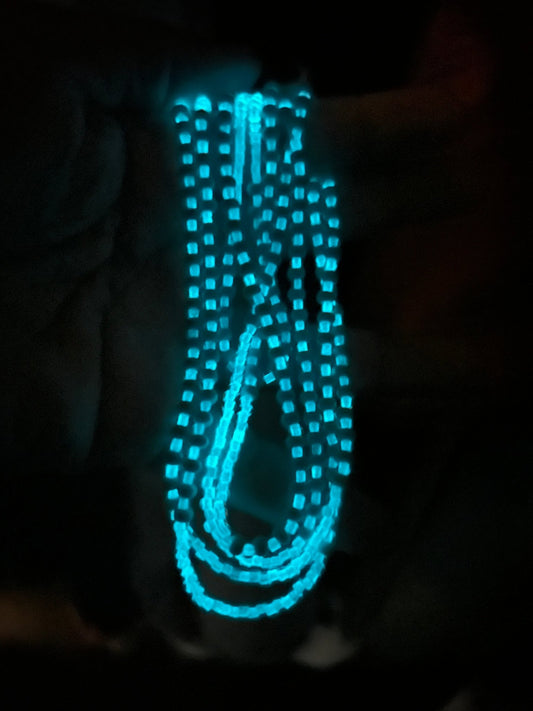 Illuminate your beauty with the "Luminescence Collection," a dazzling array of glow-in-the-dark waist beads that bring a touch of magic to your adornments. Each strand in this collection is meticulously crafted to capture and reflect light, creating an enchanting glow that enhances your natural allure both day and night.
